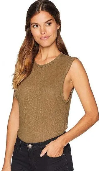 Free People Army Green Linen Bodysuit Tank. NWOT. Size S. Dark army green color with a heathered loo... Show more