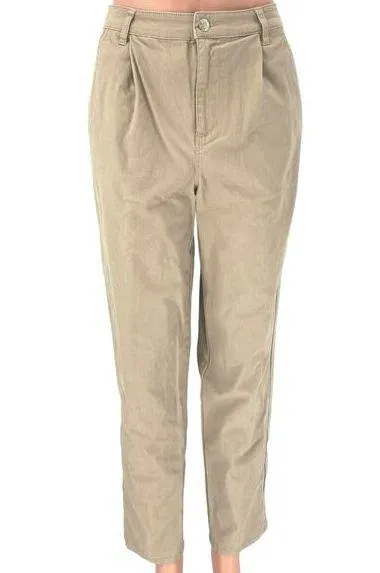 Asos Design Beige Pleated Front High Rise Straight Leg Twill Casual Travel Work Ankle Pants Size 4... Show more