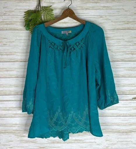 Figueroa and Flower Teal Boho Lace Peasant Blouse Size XL - $14 - From Anna