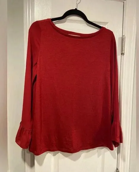 Loft New with tags Womens size medium Red scoop neck pullover blouse top shirt Sheer Flowy ruffle c... Show more