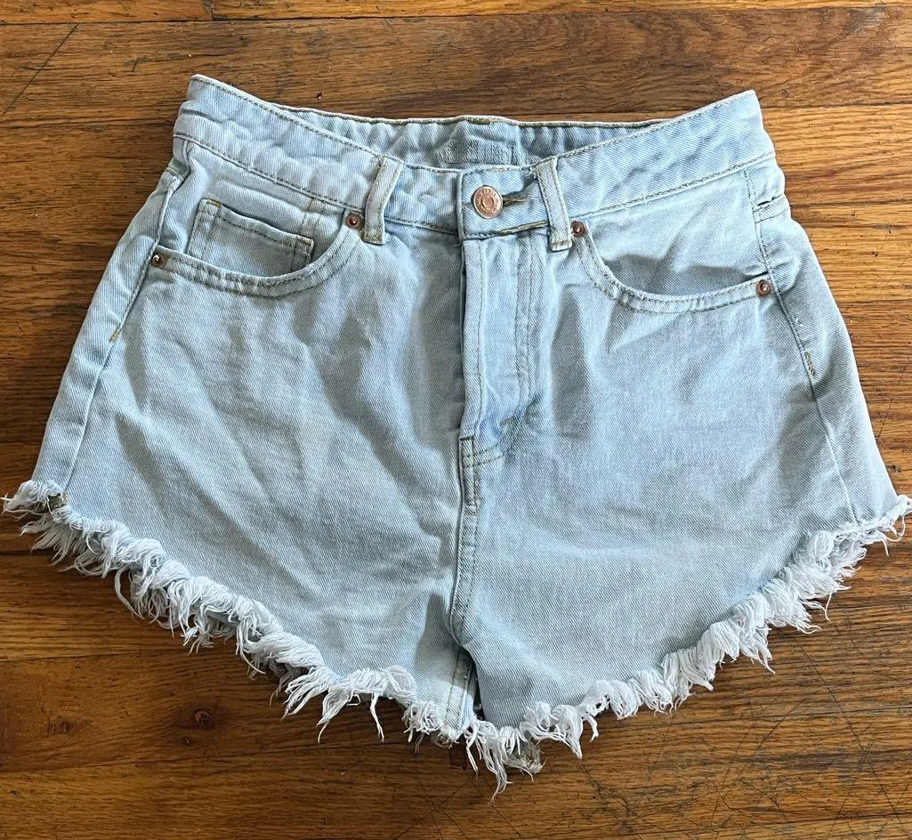 Chic light blue jean shorts with frayed edges