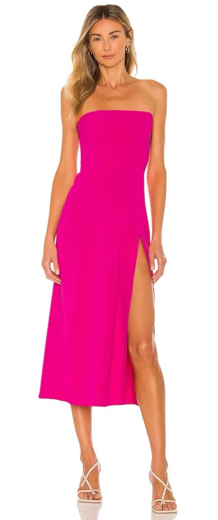 TAGS: Designer, Shopbop, Revolve, Midi, Casual, Dressy, Classic, Trendy, Strapless, Side Slit, Sexy, Spring, Summer, Fall, Winter, Travel, Vacation, Holiday, Resort, Valentines Day, Date Night, Girls Night Out, Bold, Bright, Wedding Guest, Bridesmaid, Prom, Formal, Cocktail, Party, Event, Hot Pink, Barbie, Barbiecore, Smocked, Smocking