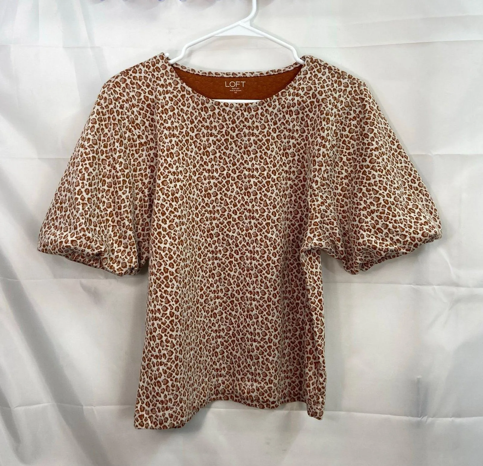 LOFT women's cream brown leopard thick knit puff sleeve stretch casual blouse Size XS In new withou... Show more