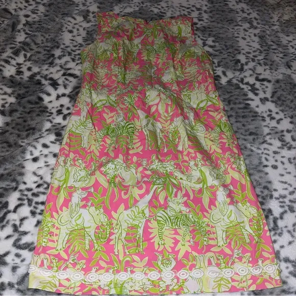 Jungle room print sheath dress Pink/green/white Animal design on the dress Embroidered accent on t... Show more