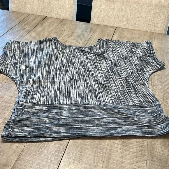 BONGO Top Blouse Sweater Pullover black, gray and white. Round Neck Short Sleeves EUC