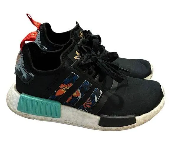 Black and floral Adidas NMD shoes Athletic sneakers Good condition some wear and stains on the soles... Show more