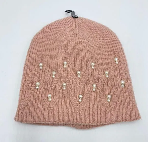 Women's Blush Pink Pearl Accent Cable Knit Beanie NWOT - $15 - From Haze