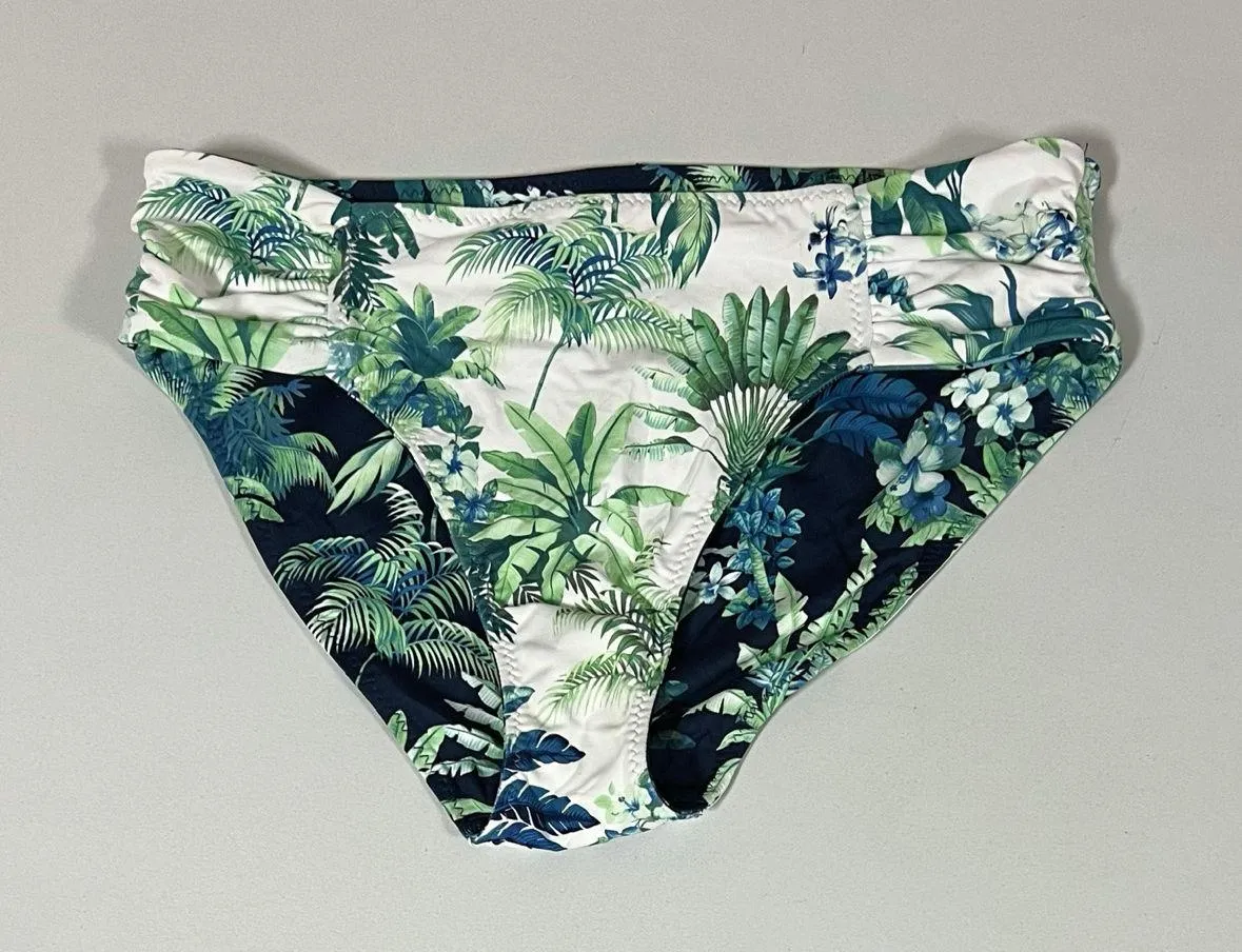 Tommy Bahama White Navy Blue Green Tropical Palm Tree Leaves Floral Reversible Bikini Bottoms Swimwe... Show more