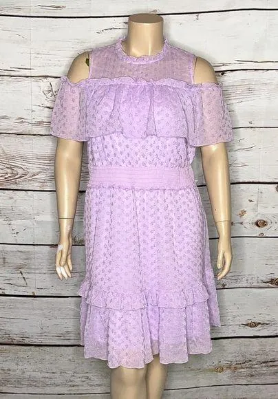 Lane Bryant Size 16 Purple Floral Embroidered Cold Shoulder Dress. Ruffle Trim. Keyhole with Button... Show more