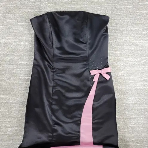 VTG Gunne Sax Jessica McClintock Black Pink Strapless Bow Fairycore Formal Maxi Ball Gown Prom Dress... Show more