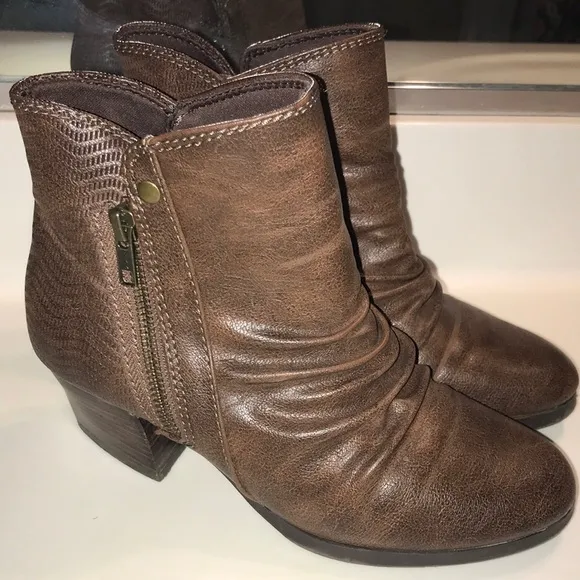 BareTraps Women’s Langley Faux Leather Vegan Brown Ruched Ankle Booties Boots Size 7 - $35 - From Hannah