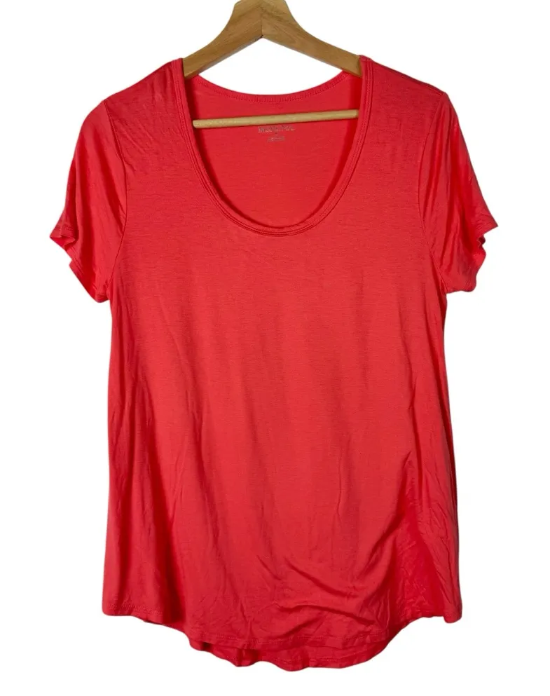 Merona Coral Orange Scoop Neck Short Sleeve T-Shirt Good used condition, minimal signs of wear. -... Show more