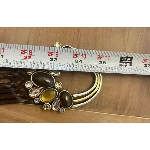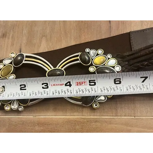 CHICO'S Ornate Buckle Metal Leather Woven Elastic Belt Women Size M/L Stretch In Great preowned con... Show more