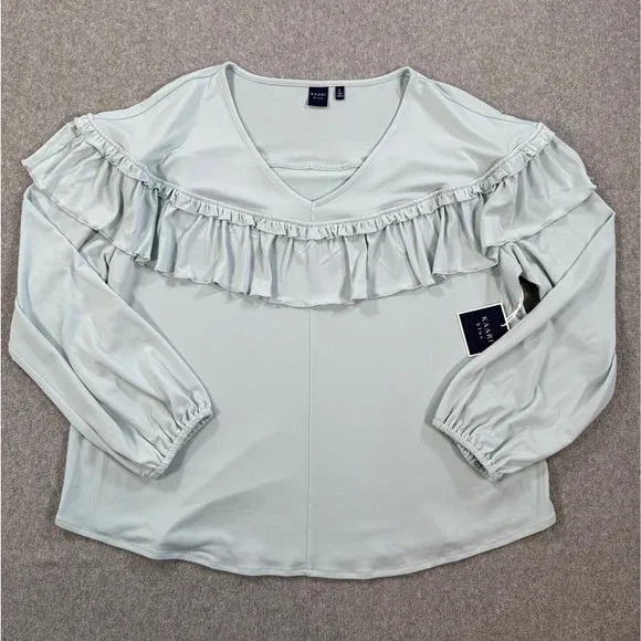 Kaari Blue Ruffle V-Neck Blouse Women's Large 3/4 Sleeve New - $23 New With Tags - From Ak