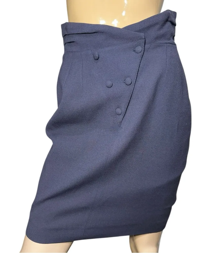 Kabuki Barbara Bui Vintage Women’s Size 40 4 Navy Blue Wool Button Up Straight Pencil Skirt. Fully l... Show more