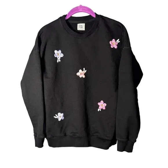 Kactus Crewneck Women's Size Medium Embroidery Floral Preppy Retro Cozy Black - $17 - From Becky