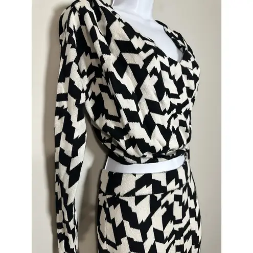 Skirt measurements: Waist 15 Length 33 Top: Pit to pit 19 Length 16 Waist 10.5 unstretched The Ultimate Power Set: This stunning two-piece set from the highly coveted Kahlana Barfield Brown x Future Collective collection features a bold, graphic black and white geometric jacquard pattern. The material is a thick, high-quality sweater knit that provides both structure and stretch. Details: • Condition: New Without Tags (NWOT). Brand new, never worn. • Top (Size XXS): A long-sleeve, wrap-style cropped sweater with a flattering V-neckline. • Skirt (Size S): A high-waisted maxi skirt featuring a dramatic side slit and a comfortable elastic waistband. • Color: High-contrast Black and White. • Fabric: Heavyweight knit (Cotton/Rayon blend) that feels incredibly expensive and holds its shape beautifully. Note on Sizing: This is a mixed-size set (XXS Top / Small Skirt). It's an ideal combination for someone who prefers a snatched, fitted look on top while wanting a more relaxed, comfortable fit and extra length in the skirt.