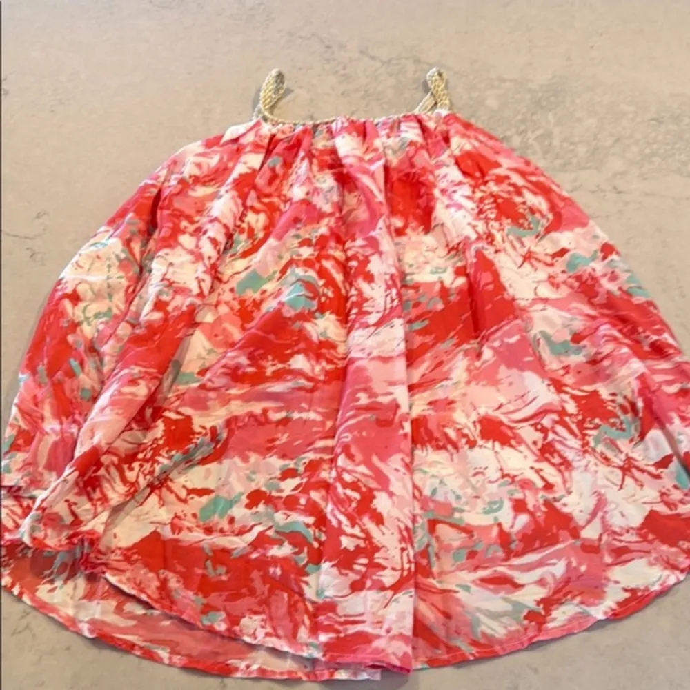 This vibrant floral dress features a stunning blend of red and pink hues, perfect for adding a pop of color to your wardrobe. Ideal for casual outings or special occasions. Worn once, so cute on! Great summer dress.