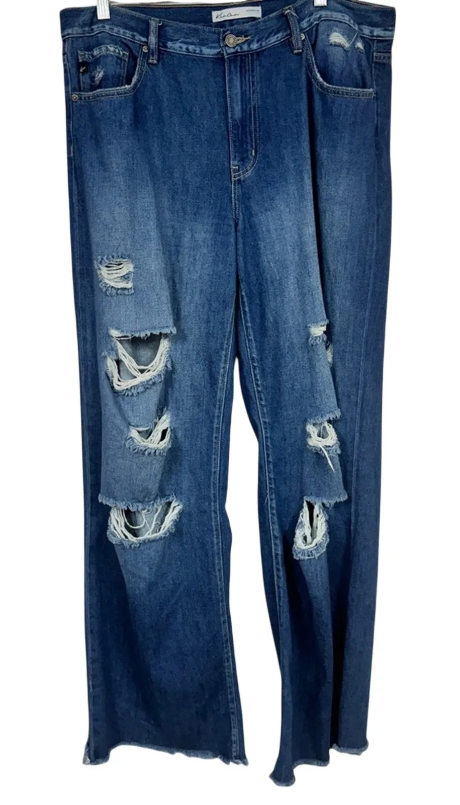 Kancan Blue Wide Leg Distressed High Rise Jeans Womens 31 Denim Classic Raw Hem - $40 - From Lisa