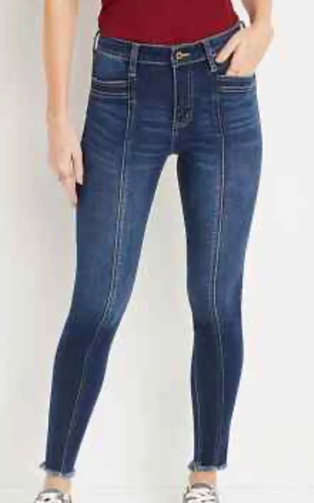 Kancan High Rise Front Seam Skinny Jeans Zip Pocket Dark Wash Women’s 32 Measurements- Total Length:... Show more