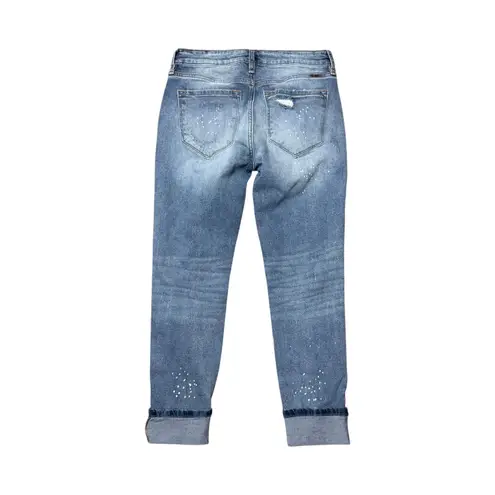 Excellent pre-owned condition 90% Cotton; 1% Spandex This isn't your ordinary pair of boyfriend jeans! Bring out your playful side when you're rocking these jeans that come with plenty of unique details! Features fading, whiskering, distress, paint splatter, folded hem, 5-pocket design, and a single button closure with zip fly. Measurements (lay flat) Waist 14" Hips 18" Rise 9" Inseam 26" (rolled as shown): 28.5" unrolled Leg Bottom Opening 5.5" Measurements are approximate Color may vary depending on screen settings or lighting I consider all reasonable offers FAST shipping Smoke-Free and Pet-Free Home Tags: Light Wash Denim Jeans Stretch Distressed