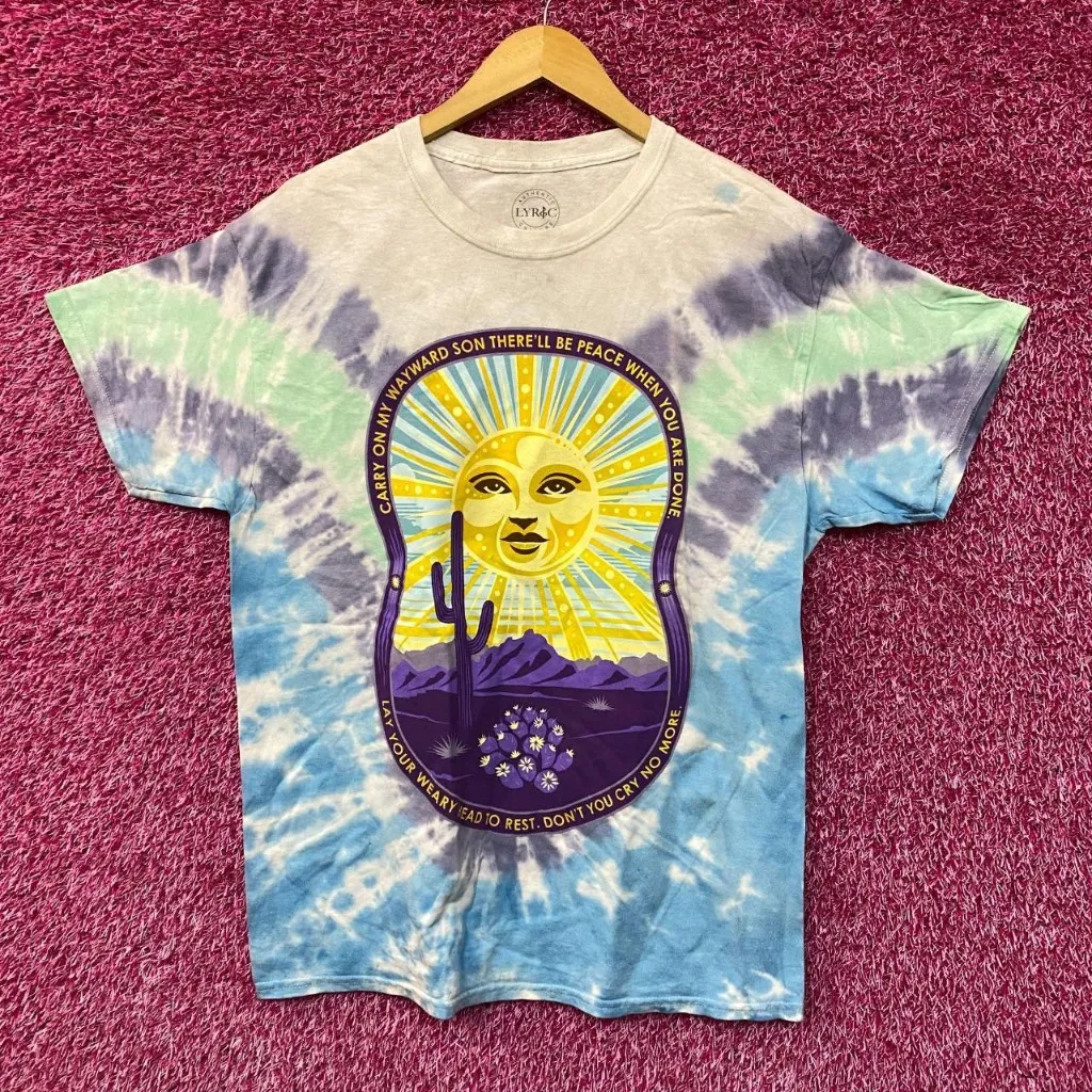 Kansas Carry on Wayward Son Desert Landscape Rock Tie Dye large Generally measures 22 inches pit to pit and 29 inches long never worn first hand overstock great condition with an amazing graphic