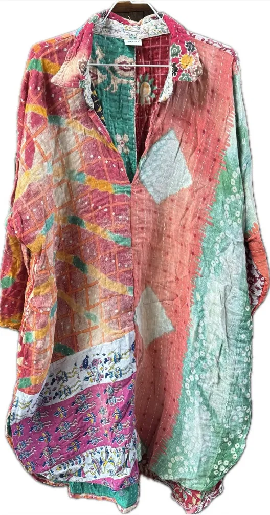 KANTHA patchwork boho shirt dress 100% cotton handmade India fall colors Orange - $68 (49% Off Retail) New With Tags - From GypsyRiver