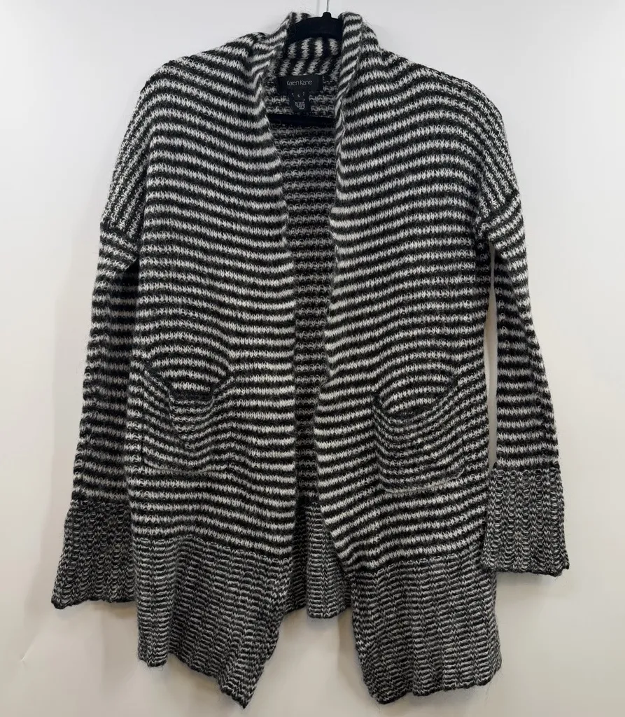 Karen Kane black white striped wool mohair blend cardigan sweater open front S - $25 - From Carrie