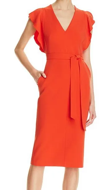 Karen Millen belted pencil v neck midi dress pencil office chic red flutter 8 - $90 - From Sassia