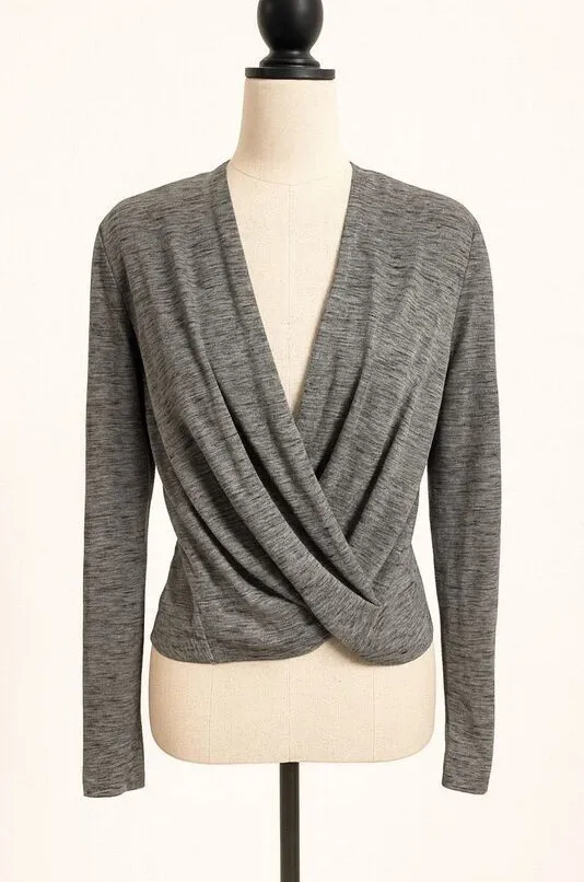 Karen Millen Gray Draped Twist Front Top | Long Sleeve | Zip Back | Size 6 • Karen Millen women’s designer top • Size 6 • Chic draped twist-front design • Flattering deep V neckline • Long sleeves for a sleek silhouette • Neutral heather gray color • Exposed zipper detail at back • Stretchy fabric with a fitted, polished look • Ideal for workwear, evening, or elevated casual styling Fabric Content: • 73% Polyester • 25% Viscose • 2% Elastane ⸻ Karen Millen top, draped blouse, twist front top, gray long sleeve blouse, designer work top, fitted stretch top, zip back blouse, women’s size 6 top, minimalist chic, office to evening ⸻ #KarenMillen #DesignerTop #DrapedTop #WorkwearStyle #ChicBasics