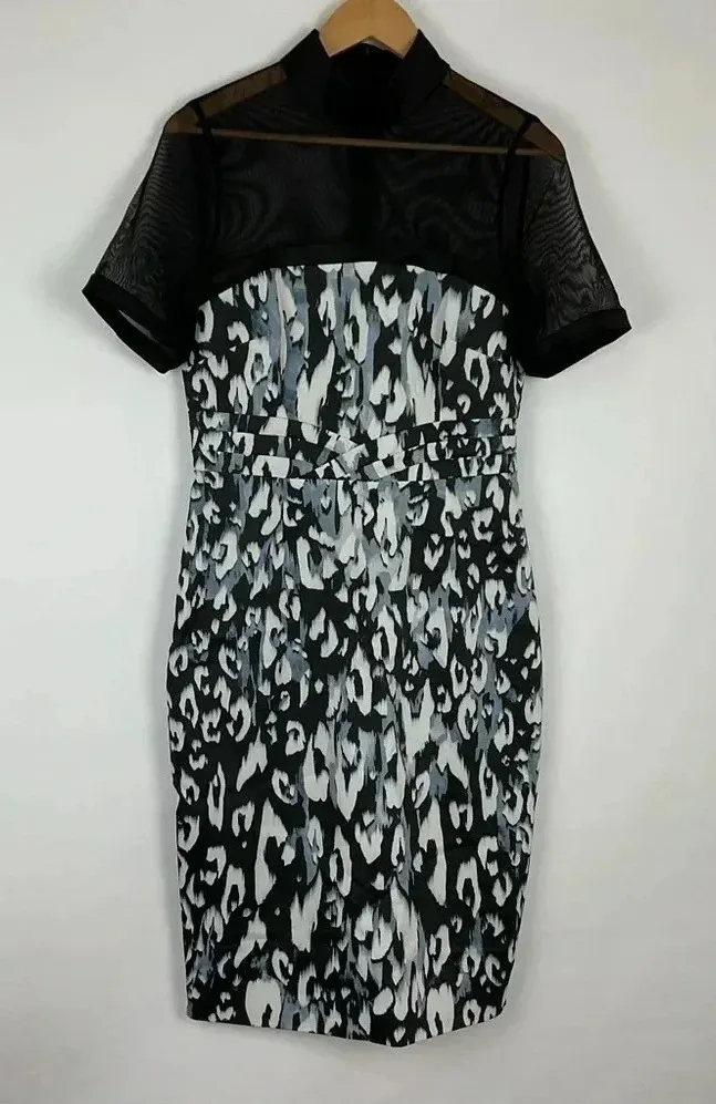 Karen Millen Printed Snow Leopard Pencil Dress. Womens Size 10. Knee length dress. Short sleeves. Zi... Show more