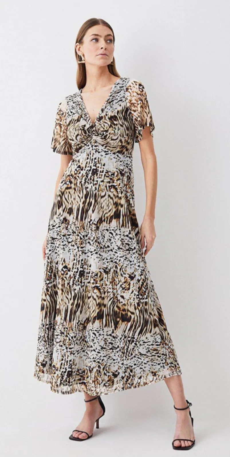 Karen Millen Snake Print Mesh Knot Detail Midaxi Dress Size 4 Brown - $50 - From Thrifted