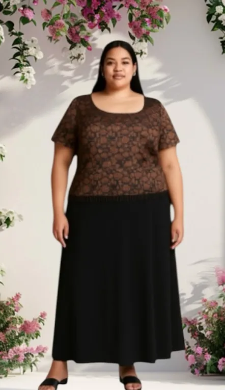 Excellent pre owned condition no beads missing!! Chic blouse with floral design. Features short sleeves and scoop neckline. Ideal for stylish outings. Pair with maxi black skirt for stock photo look! The first image shows an AI-generated model representation created to show how the actual item fits and looks when worn. All remaining photos are of the exact item you will receive. Back zipper fully lined shoulder pads size 14 dry clean only color black, brown and gold treads all through out top. Black beading on lower portion