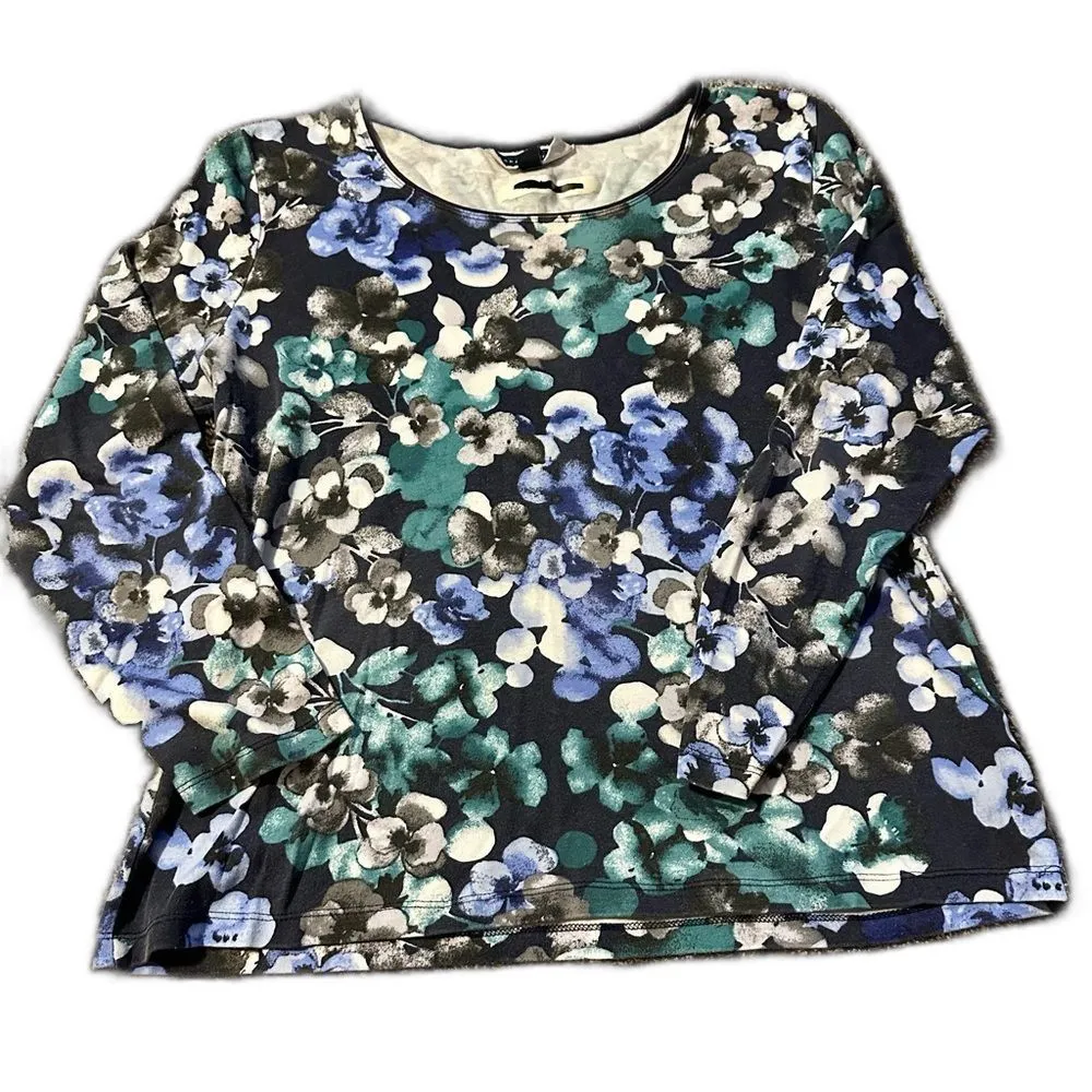 Karen Scott Floral Long Sleeve Top - Blue and Green (R1) Size L - $11 - From Kristine