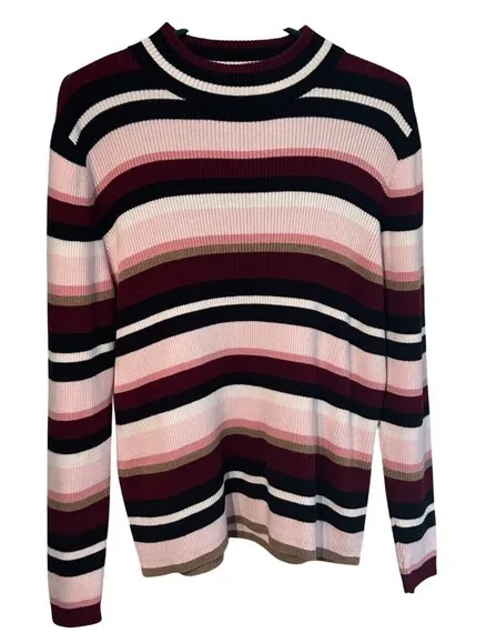 Karen Scott Women Large Stripe Mock Neck‎ Red Sweatshirt Casual Rainbow Pink - $14 - From Desiree
