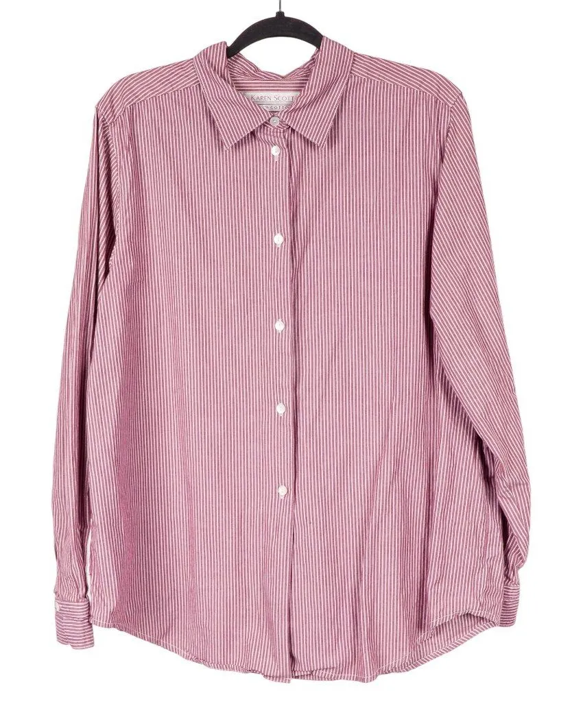 Size: Womens L Measurements are approximate and taken flat. Underarm to Underarm 22 in Sleeve Length 25 in Top Length 29 in There are no stains, tears, or rips. Please see the pictures. All pictures are of the actual item. Colors may vary slightly due to camera limitations and monitor settings. • 100% Cotton • Machine Wash Pre-Owned Good