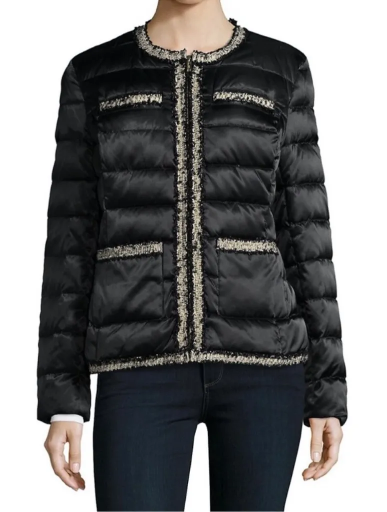 Karl Lagerfeld Black & Gold Tweed Detail Front Zip Puffer Jacket size XL - $60 - From blanche