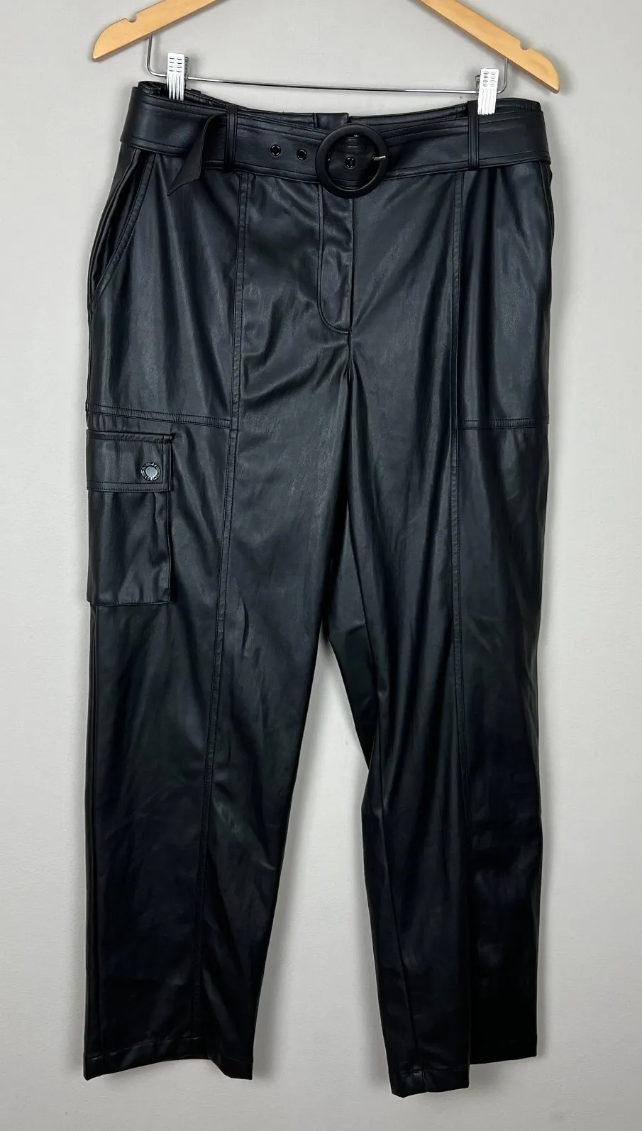 Karl Lagerfeld Faux Leather Cargo Pants Womens 12 Black Belted Straight Leg New New with tags. Me... Show more