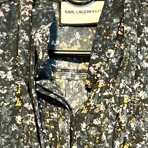 Karl Lagerfeld midi dress featuring a delicate floral print in black, pink tones. Long sleeves with... Show more