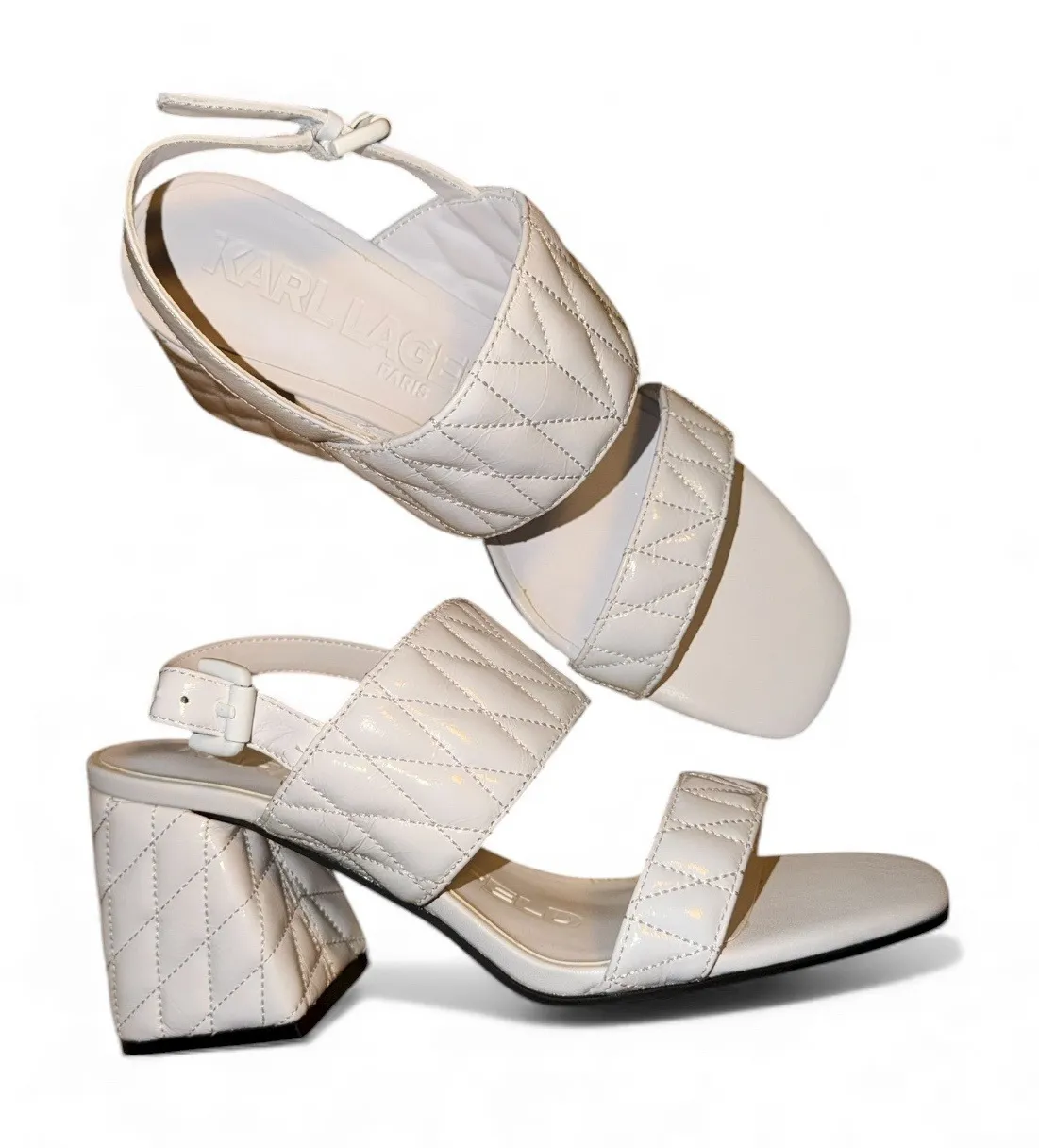 Elevate your style with these chic Karl Lagerfeld Paris Sarina slingback sandals. The elegant quilted pattern across the straps adds a touch of sophisticated texture, while the modern block heel provides both comfort and a flattering lift. The crisp white hue offers versatile styling possibilities, making them perfect for brunch with friends or a sophisticated evening out. Style: Strappy Department: Women Upper Material: Patent Leather UK Shoe Size: 6.5 AU Shoe Size: 9.5 Heel Style: Block EU Shoe Size: 39 Features: Adjustable Strap, Straps, Buckle, Cushioned Closure: Buckle Pattern: Geometric Accents: Quilted, Logo Heel Height: Mid (2-2.9 in) Type: Sandal Keywords: Karl Lagerfeld, Quilted, Block Heel, Slingback, White Sandals, Designer Shoes, Fashion Sandals, Summer Style, Elegant, Chic, Versatile, Modern