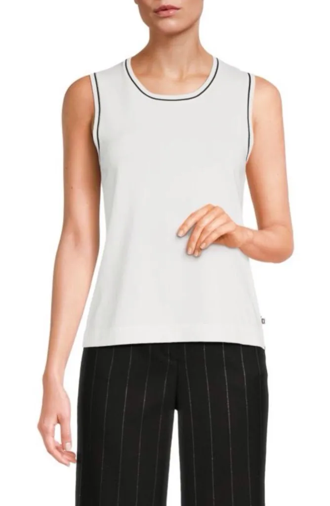 KARL LAGERFELD PARIS Women’s Tipped Knit Tank Top Size S. Great condition. This cute, minimalist ta... Show more