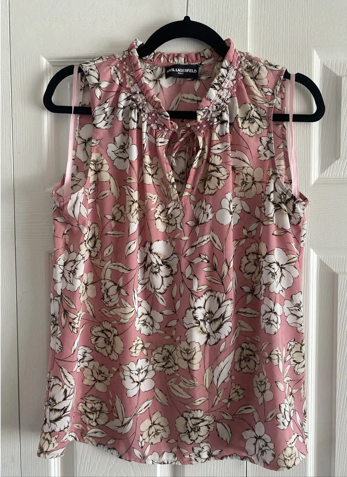 Karl Lagerfeld Womens Small Pink Floral Sleeveless Bouse Pearl Beaded Feminine - $27 - From Arielle