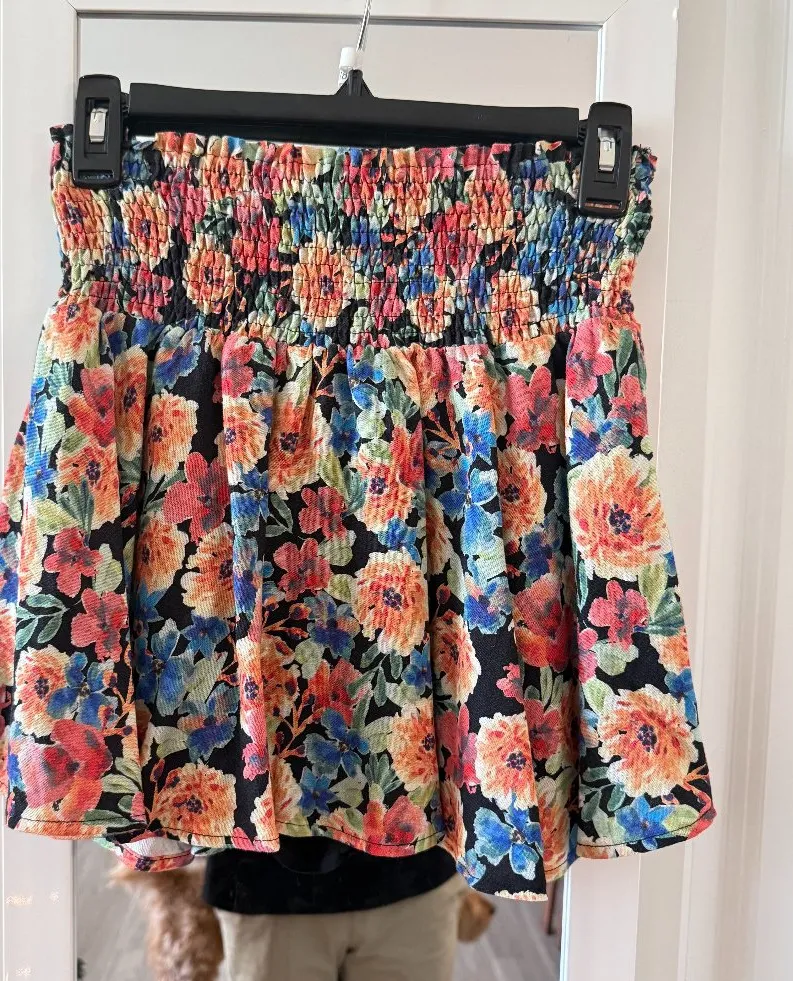 This Karlie mini skirt features a vibrant floral print in shades of coral, blue, green, and yellow o... Show more