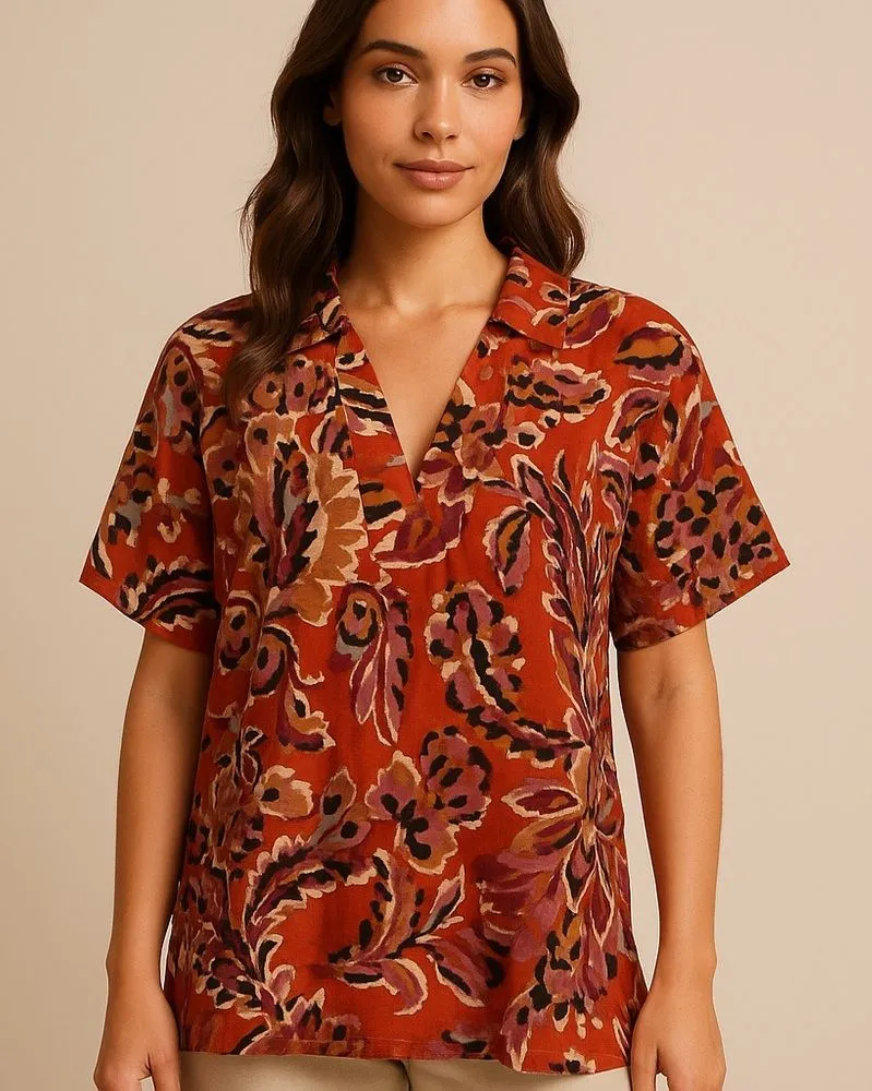 This Karlie floral tunic blouse in size Large is a standout boho statement piece with its vibrant allover floral print and relaxed drapey silhouette. Crafted from soft breathable cotton, it’s perfect for layering, wearing as a beach cover-up, or styling with denim, leggings, or linen bottoms.