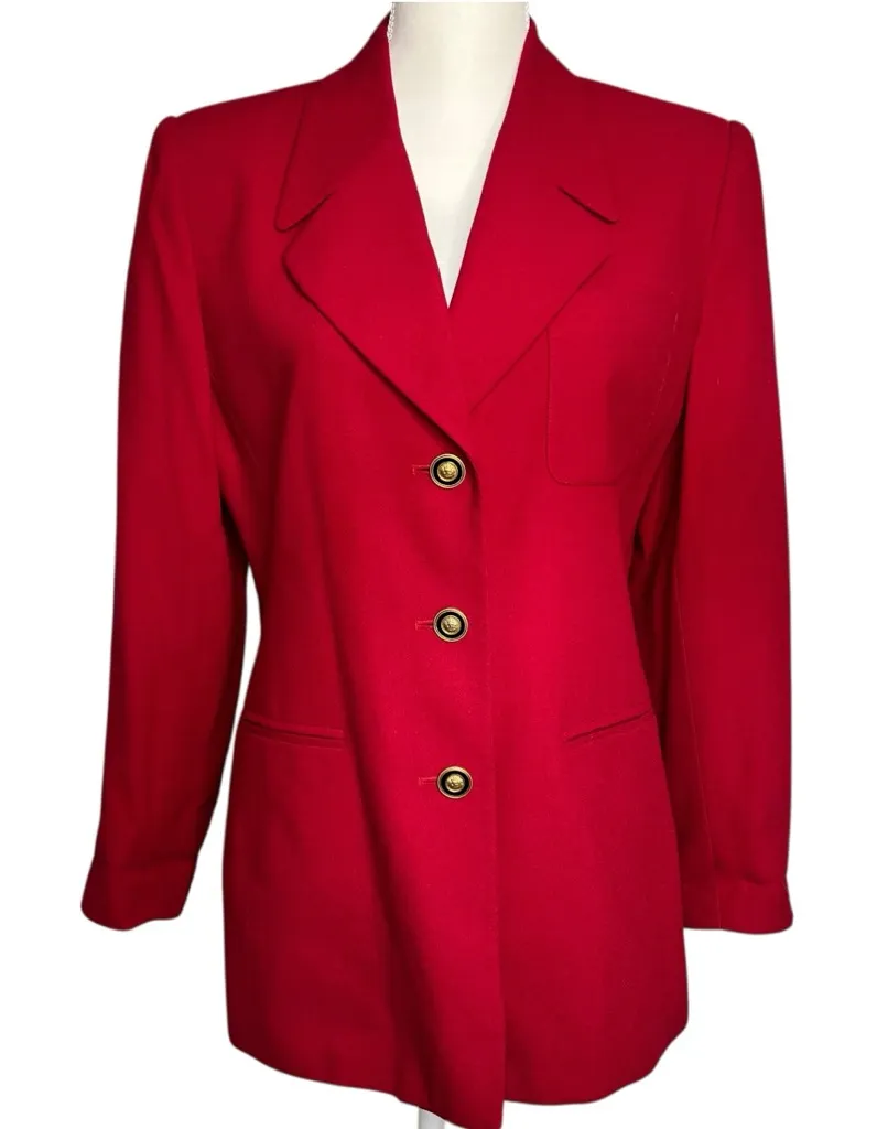 Vintage Kasper ASL Petite Red Women’s Blazer Size 10 Minor piling on creases. Metal buttons. Lined.... Show more
