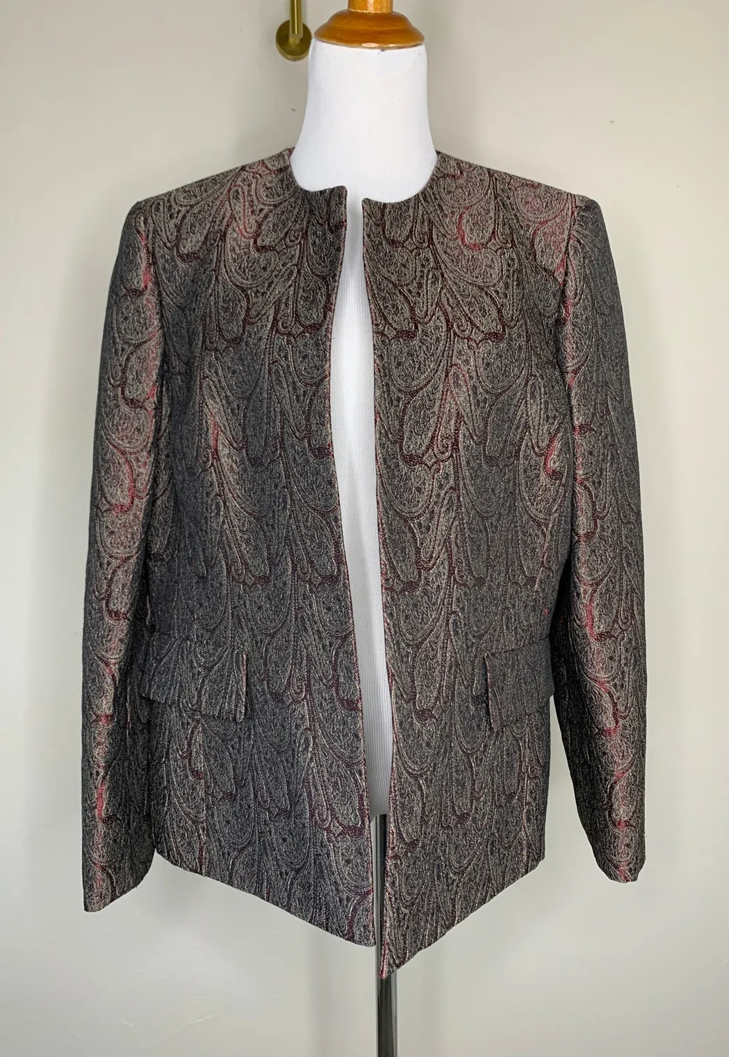 Kasper Brown Burgundy Paisley Blazer Sz 14 Brocade Fabric - $35 - From Kayla