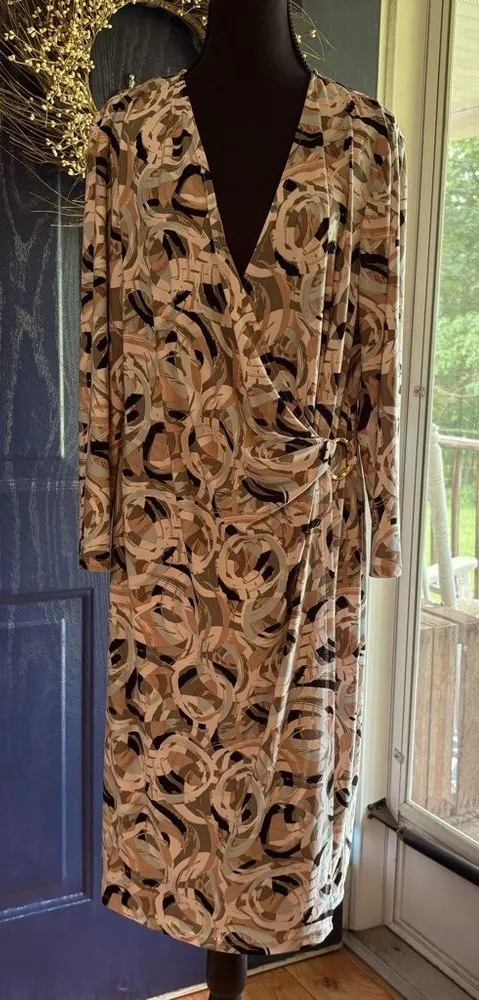 Kasper Dress Womens Large Blue Moc Wrap V-Neck Seaglass Gold Waist size XL Brown - $32 - From Regina