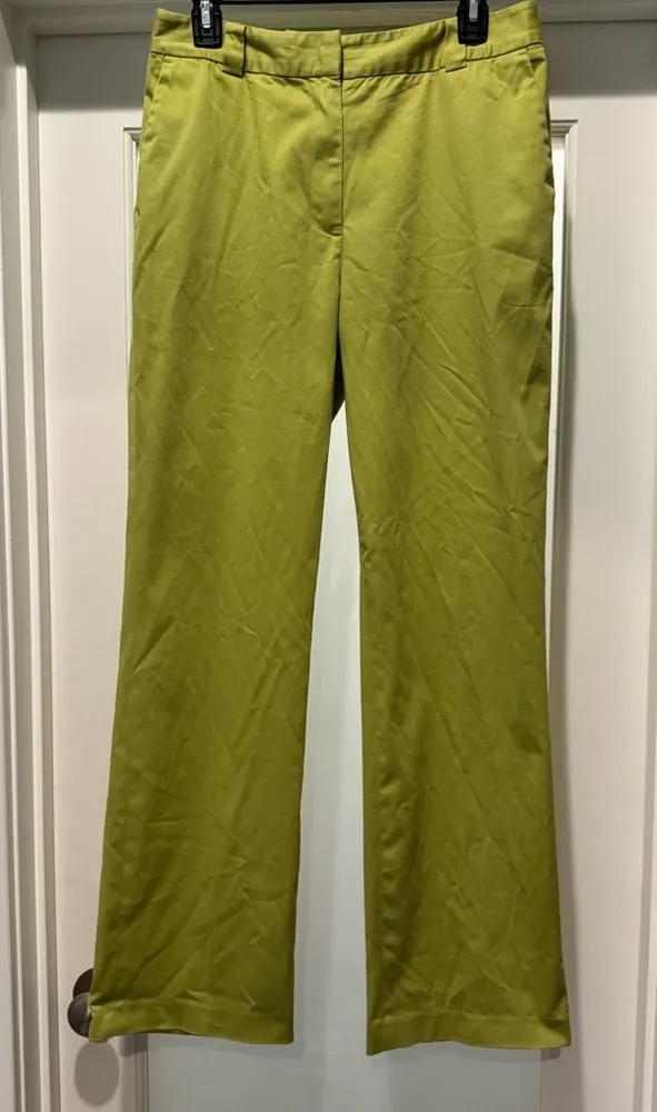 Brand-KASPER Size-10 Color-Lime Green Kiwi Condition-Preowned in good condition small stain on back at the bottom of pant Material-Cotton Blend Approximate measurements Waist 32 inches Waist to hem 40.5 inches Inseam 30 inches Stylish and on trend kiwi colored slacks. Perfect to pair with white or a colorful top for a powerful look. Wear to office or out for cocktails. Pair with heels or flats for a casual or more formal look. Career Capsule Wardrobe Classic Colorful Power Look