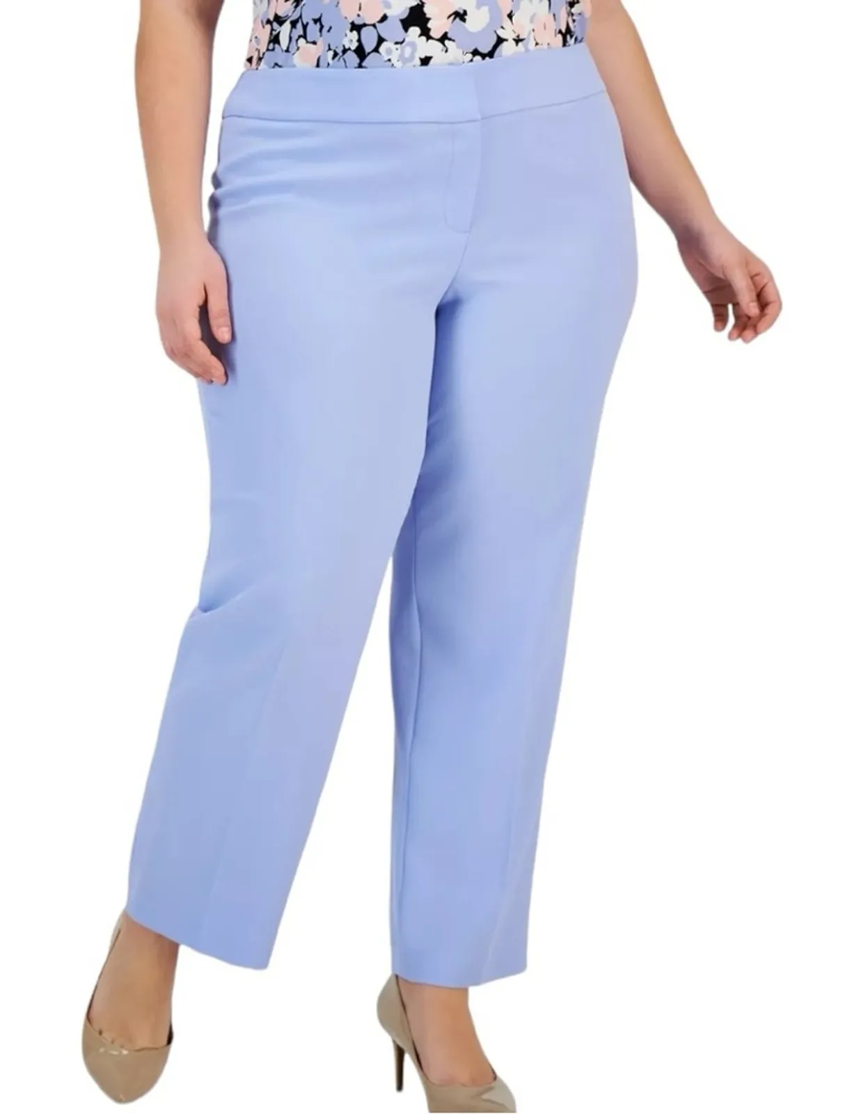 Style Details • Straight leg dress/work pants • Flat front, mid rise • No front pockets • Elastic inset at waist • Back faux welt pockets • Zip, bar & inside button closure • Polyester & elastane blend • Machine washable • Solid sky blue/California Sky • New with tags NWT Model photos are for fit and style reference. Please see item photos for more info on color and condition. These pants are more of a sky blue, more colorful than the model photos. I am also selling the same pants in pink and purple. Approximate Measurements • Size 22W - stretches • 23” across waist • 29” inseam, 11” rise • 10” across leg opening • Measurements taken across laying flat Plus size curvy pastel blue colorful stretch business work career office professional workwear business casual suit separate feminine classic modest slimming dressy spring summer