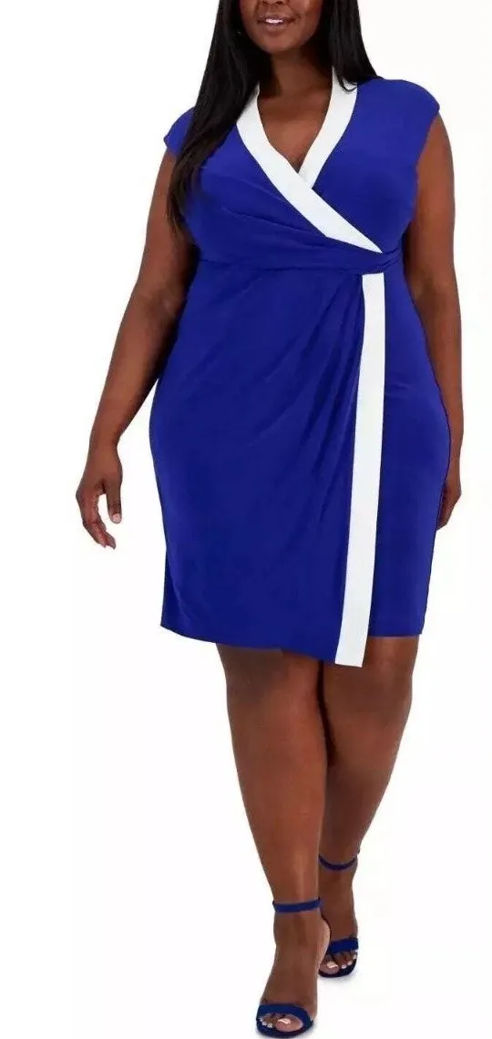 Kasper Plus Size Faux-Wrap Cap-Sleeve Dress Royal Blue, size 1X, NWT, MSRP $99 Blue - $59 New With Tags - From Maria
